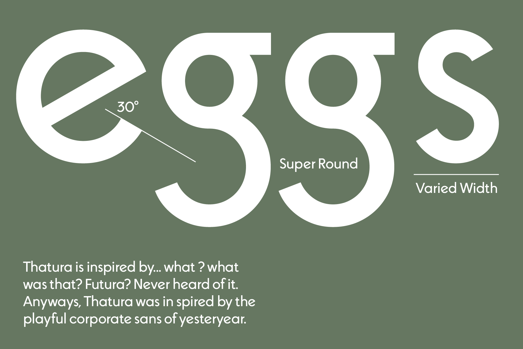 VariableThatura is a geometric sans family that is inspired by some font I saw once but can’t remember its name… but That’s not important. Thatura is kinda like that font but with a little more quirk to it and a load more customization options. From sharp corners and ascenders to off axis “e”s and super playful ”g”s. You can pump up the fun factor or dial it back to a more tame feel depending on what you need.